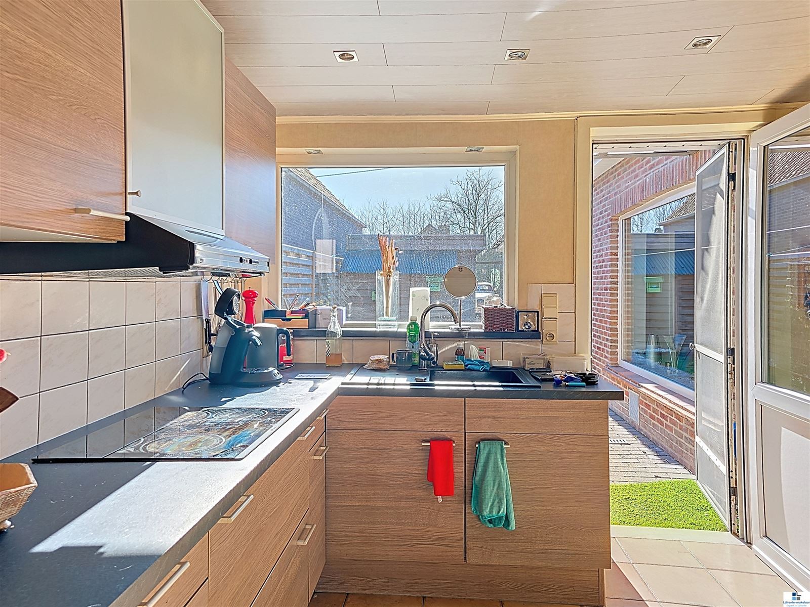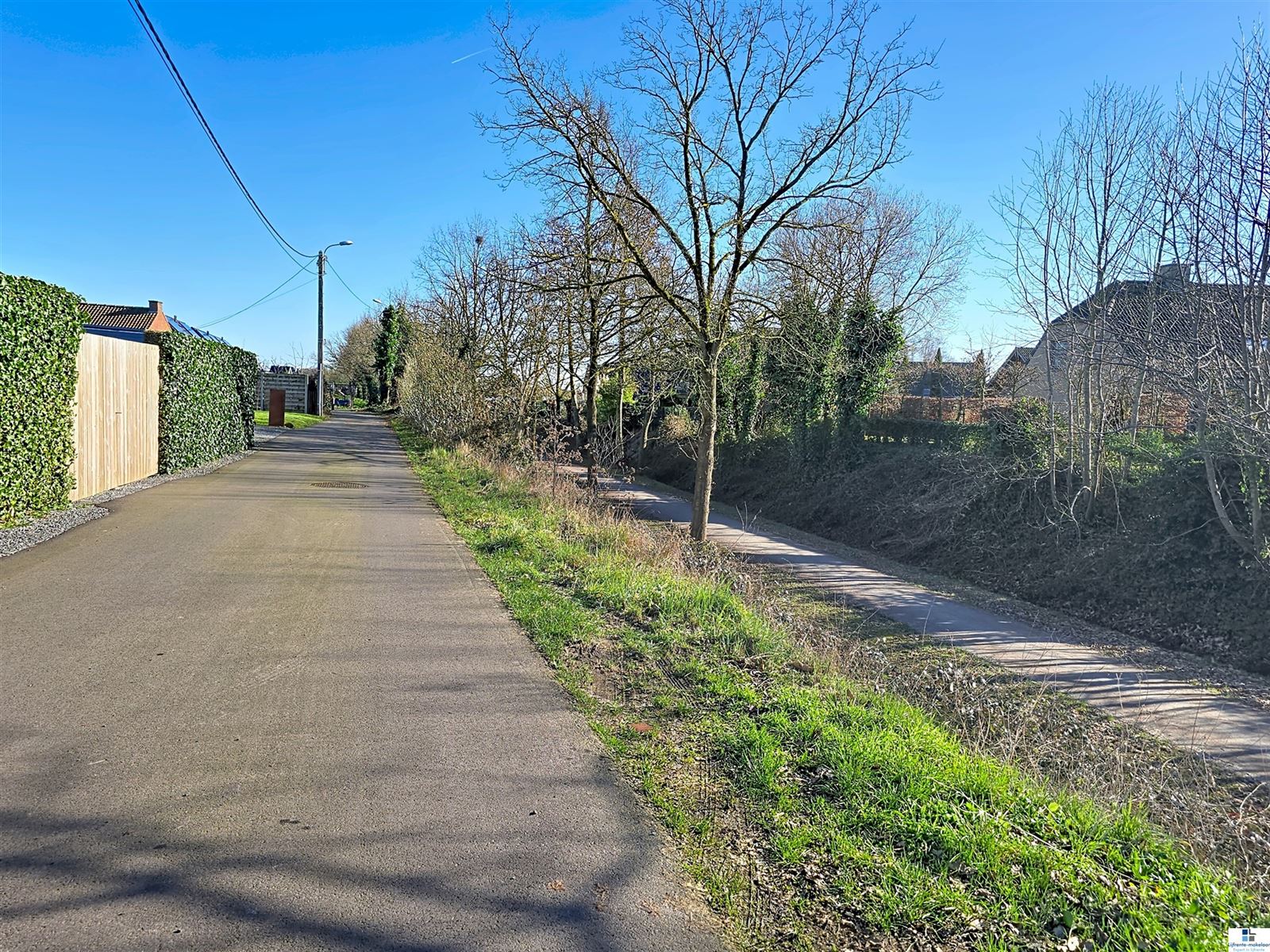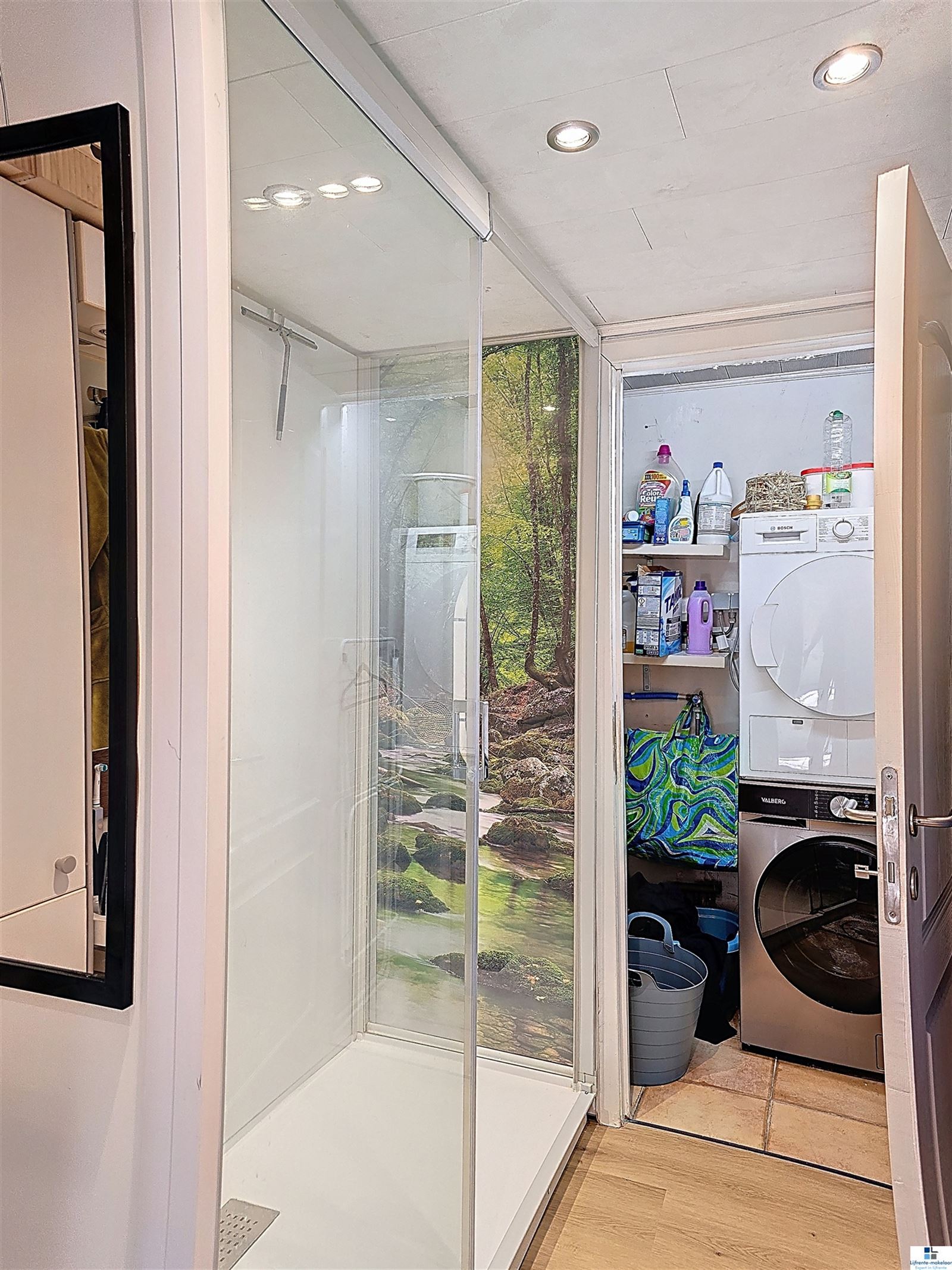 Recht tegenover de woning, aan de straatzijde, bevindt zich bovendien een ruime garage, wat een extra praktische troef vormt.