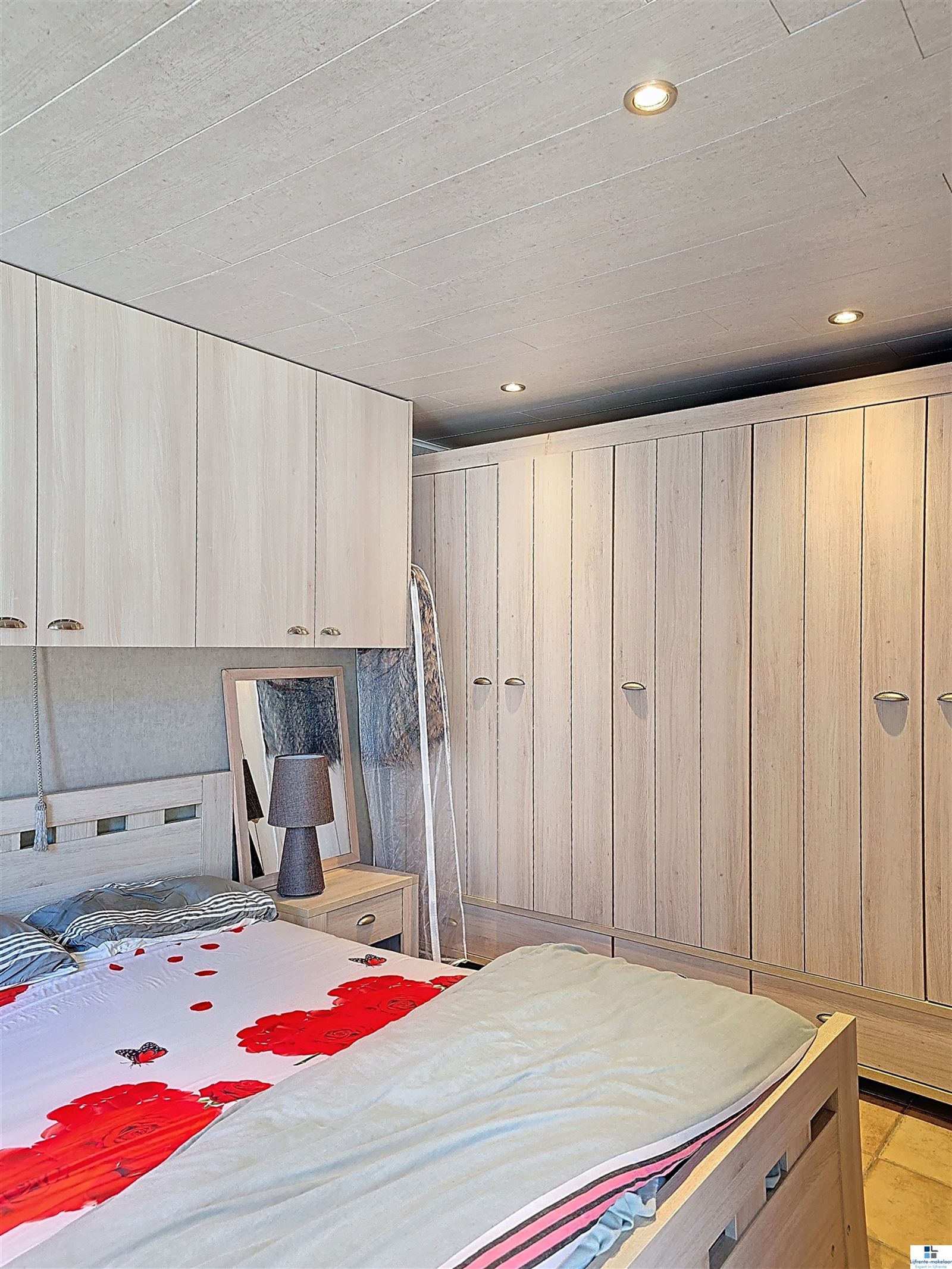 Op de zolderverdieping werd nog een extra slaapkamer ingericht, aangevuld met bijkomende bergruimte.
